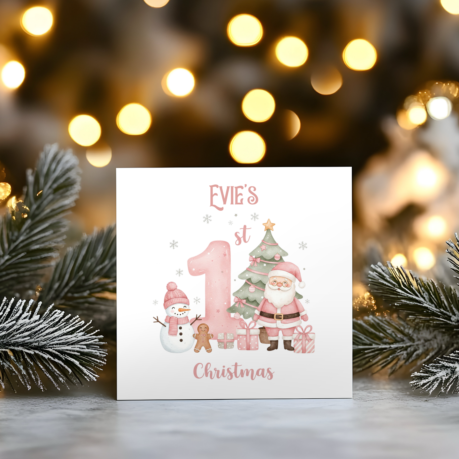 Baby Girls 1st Christmas - Personalised Christmas Greeting Card